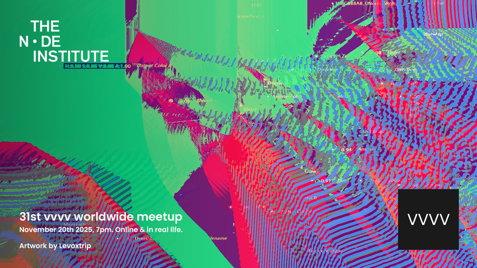Artwork by Levoxtrip Here is the 31st vvvv worldwide meetup on November 20th, 7pm CET, hosted by The NODE Institute. This is the meetup for creatives and developers using the visual programming