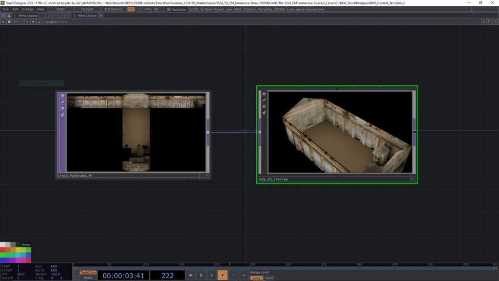 If you have used any of the template files that I have proposed, or your show runs on the 3D model in general, you can use this file to render, warp, spatialise and store all the output clips in one go.